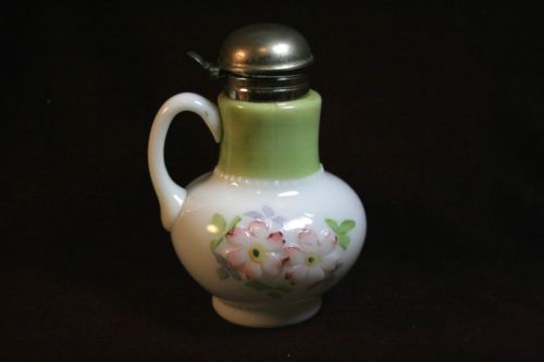 ANTIQUE MILK GLASS ''APPLE BLOSSOM'' COREOPSIS CONSOLIDATED GLASS SYRUP