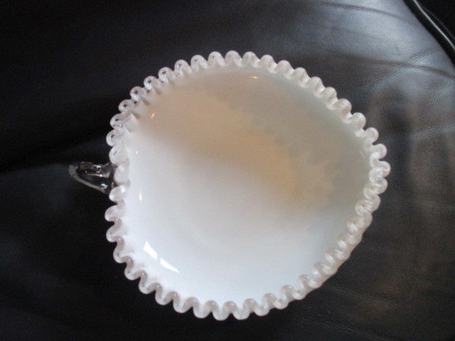 Title (ebay affiliate link): Crested Milk Glass white Fenton heart trinket dish gorgeous condition pretty