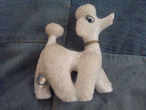 Title (ebay affiliate link): Lovely Vintage curly French Poodle dog figurine vase milk glass IRICE JAPAN