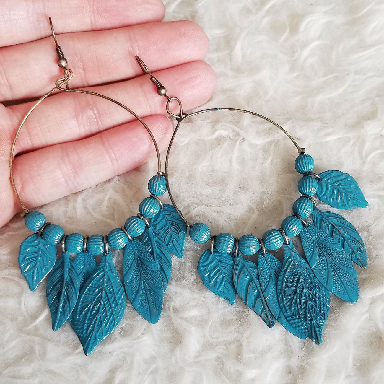 Title (ebay affiliate link): Vintage Womens Antique-Tone Blue Leaves Antique-Tone-Ring Dangle Hook Earrings