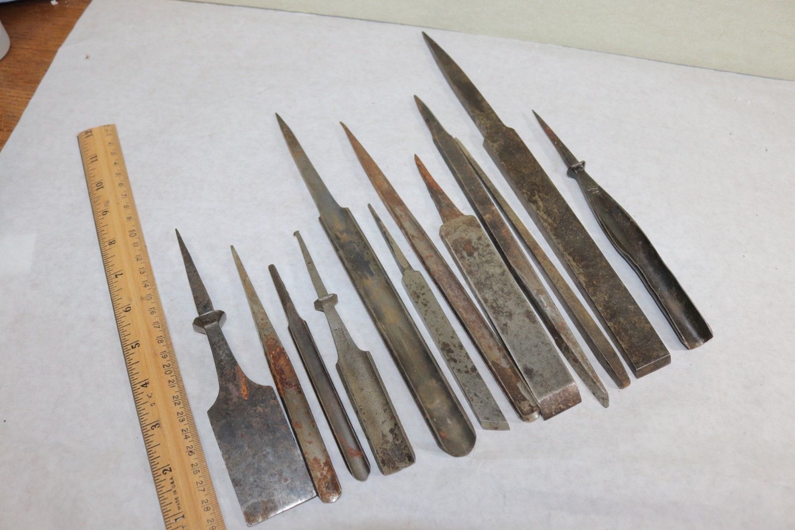 Title (ebay affiliate link): Lot of 12 Vintage Wood working carving turning tang chisels & gouges