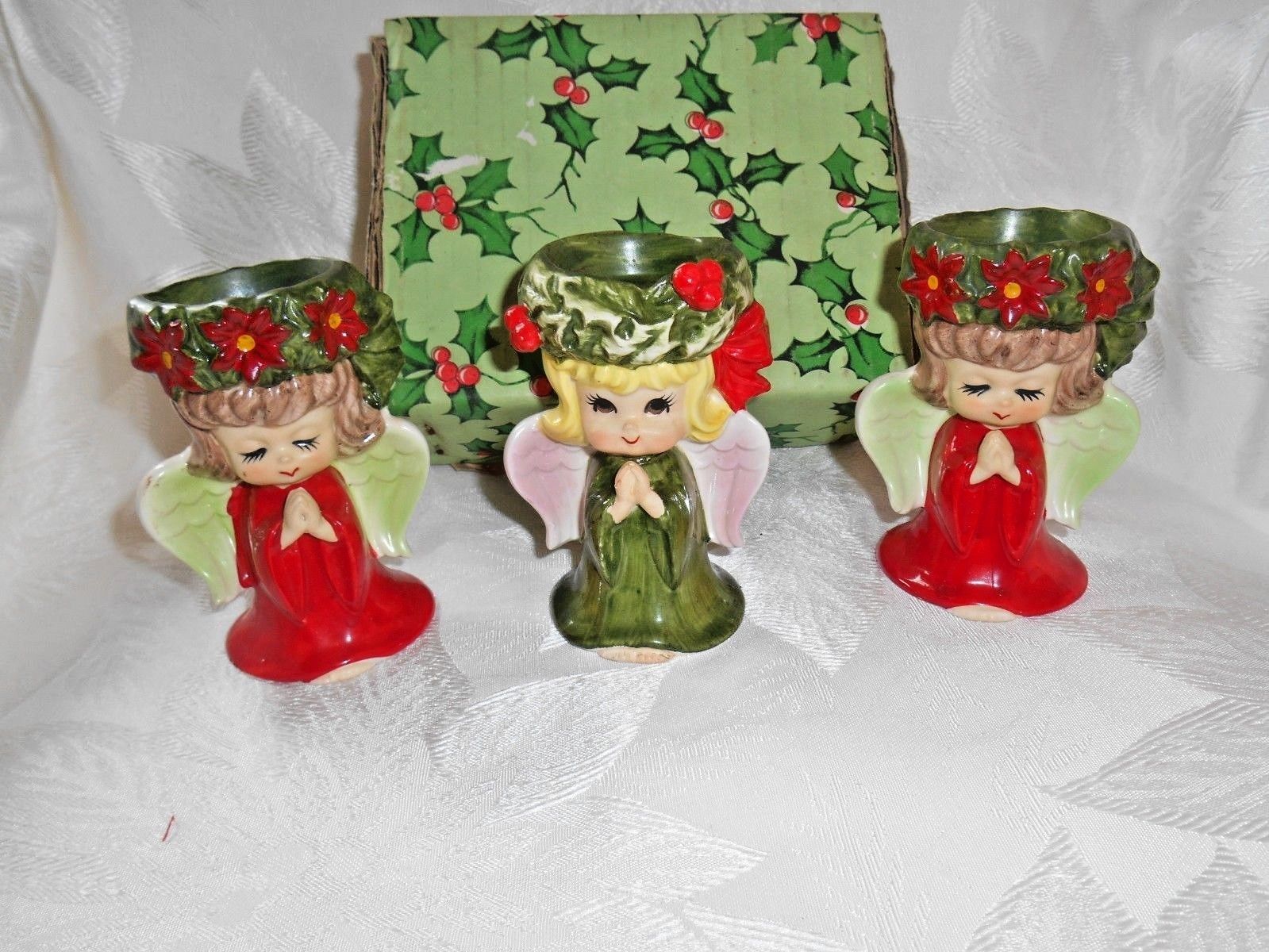 Title (ebay affiliate link): Vintage Lefton Christmas Red & Green Angels Trio in Original Box