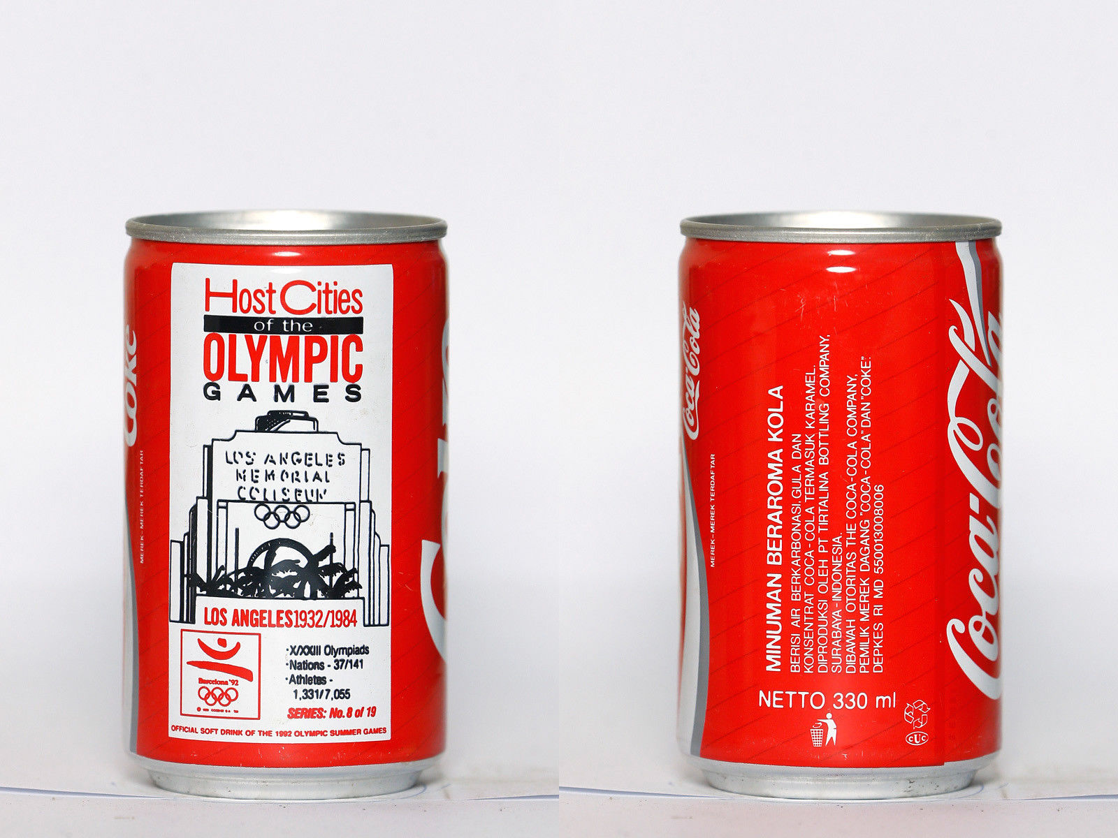 Title (ebay affiliate link): 1992 Coca Cola can from Indonesia, Barcelona ''92 / Los Angeles 1932/1984