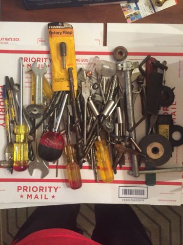 Large Flat Rate Box Lot Of Tools. Bits, Drills, Sanders, Screws, Bolts, Drivers