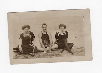 Title (ebay affiliate link): RPPC Man and Two Women in Vintage Bathing Suits on the Beach York Harbor Maine