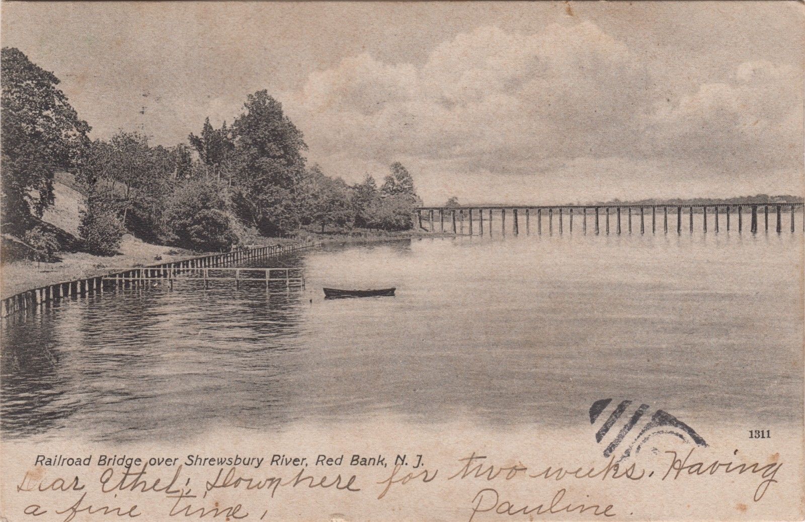 Railroad Bridge Shrewsbury River Red Bank NJ New Jersey Vintage View POSTCARD