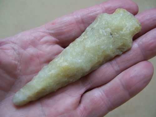 LARGE AUTHENTIC STEMMED QUARTZ POINT FROM LAKE DELAVAN, WISCONSIN