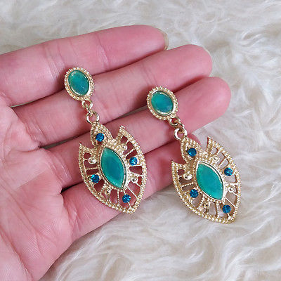 Title (ebay affiliate link): Vintage Womens Stylish Bohemian Antique Green Beads Stones Stud Pierced Earrings