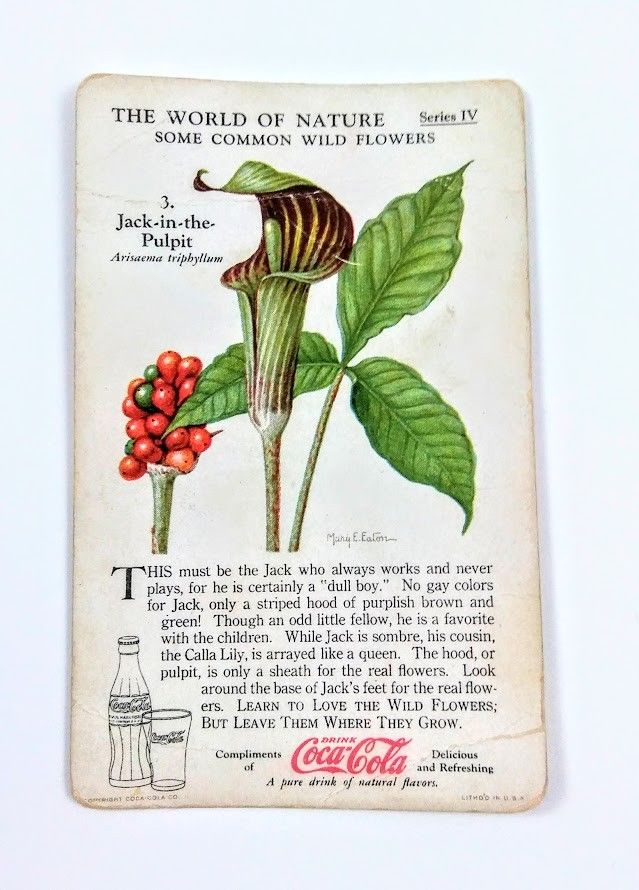 Title (ebay affiliate link): 1930 Coca Cola~World of Nature~Common Wild Flowers~#3 Jack-in-the-Pulpit~Series4
