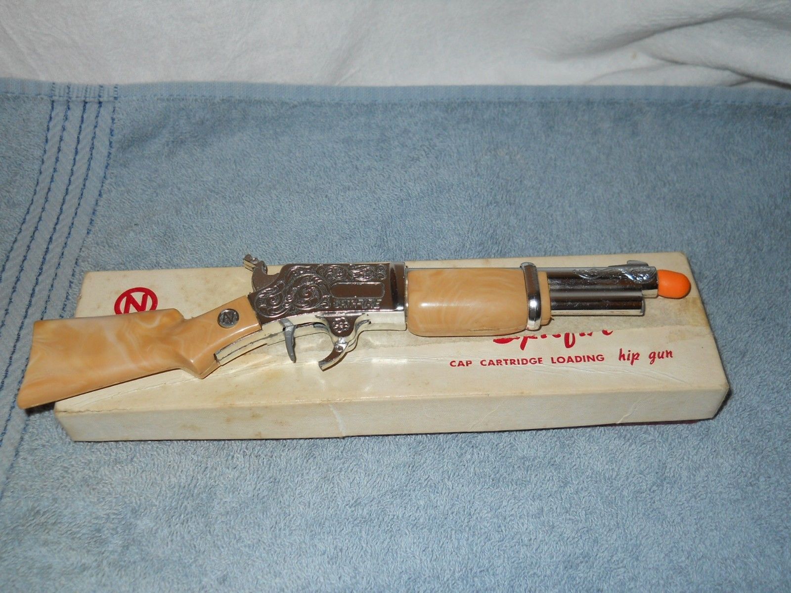 Vintage Spitfire Cap Cartridge Loading Hip Gun in box.