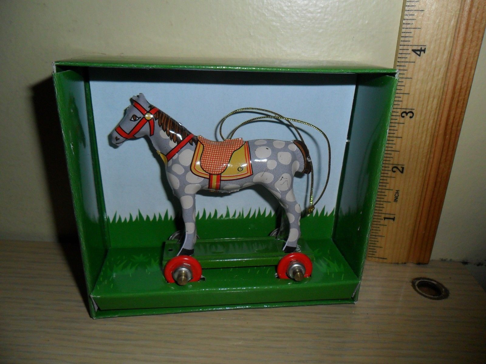 Title (ebay affiliate link): Schylling Penny Toy ~ Tin Toy Collection Ornament ~ Spotted Horse
