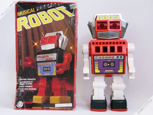 Title (ebay affiliate link): HORIKAWA SH YONEZAWA MUSICAL ROBOT PLASTIC TIN HK JAPAN VINTAGE SPACE TOY