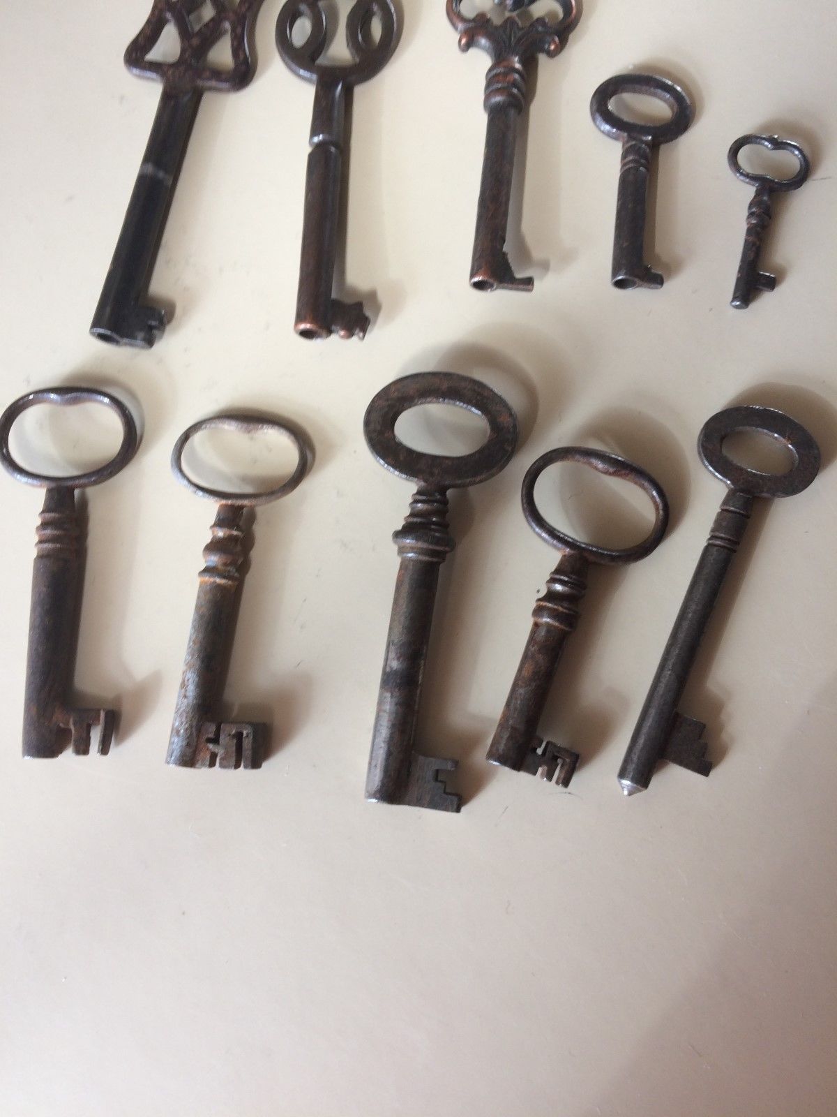 Title (ebay affiliate link): 10 Old Antique Vintage Keys for Cabinet Wardrobe Cupboard Drawers Furniture etc.