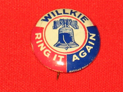 Title (ebay affiliate link): 1940 Wendell Willkie Campaign Pin Pinback Button Badge