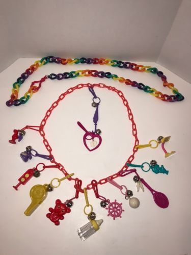 Title (ebay affiliate link): Vtg 1980''s Plastic Bell Clip Charms & Necklace 13 Charms -RARE PIECES Plus Chain