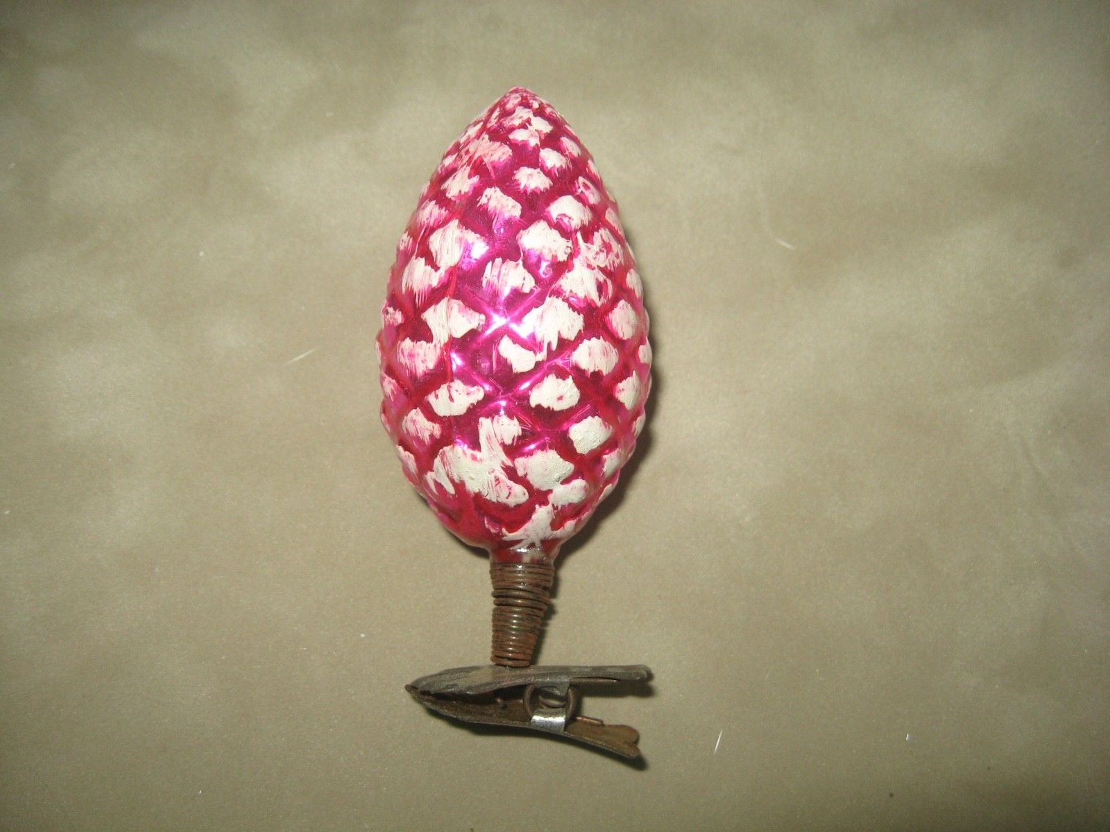 Title (ebay affiliate link): Vintage silvered with pink wash clip on pine cone ornament