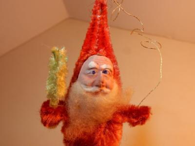 Vintage Christmas Santa Claus Paper Clay Figure chenille japan w/ tree ornament