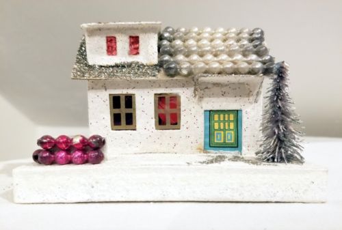 Title (ebay affiliate link): Cardboard Cottage with Glass Beaded Pearl Roof. Japan, 1930s. Putz Scenes