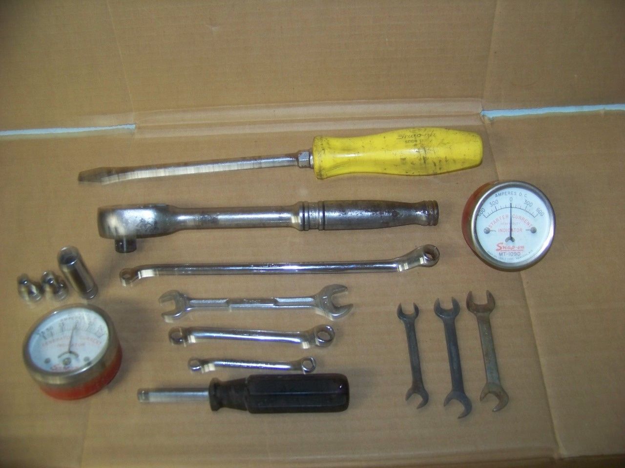 Title (ebay affiliate link): VINTAGE SNAP ON 15 PIECE LOT WRENCHES GAGES SCREWDRIVER ETC.