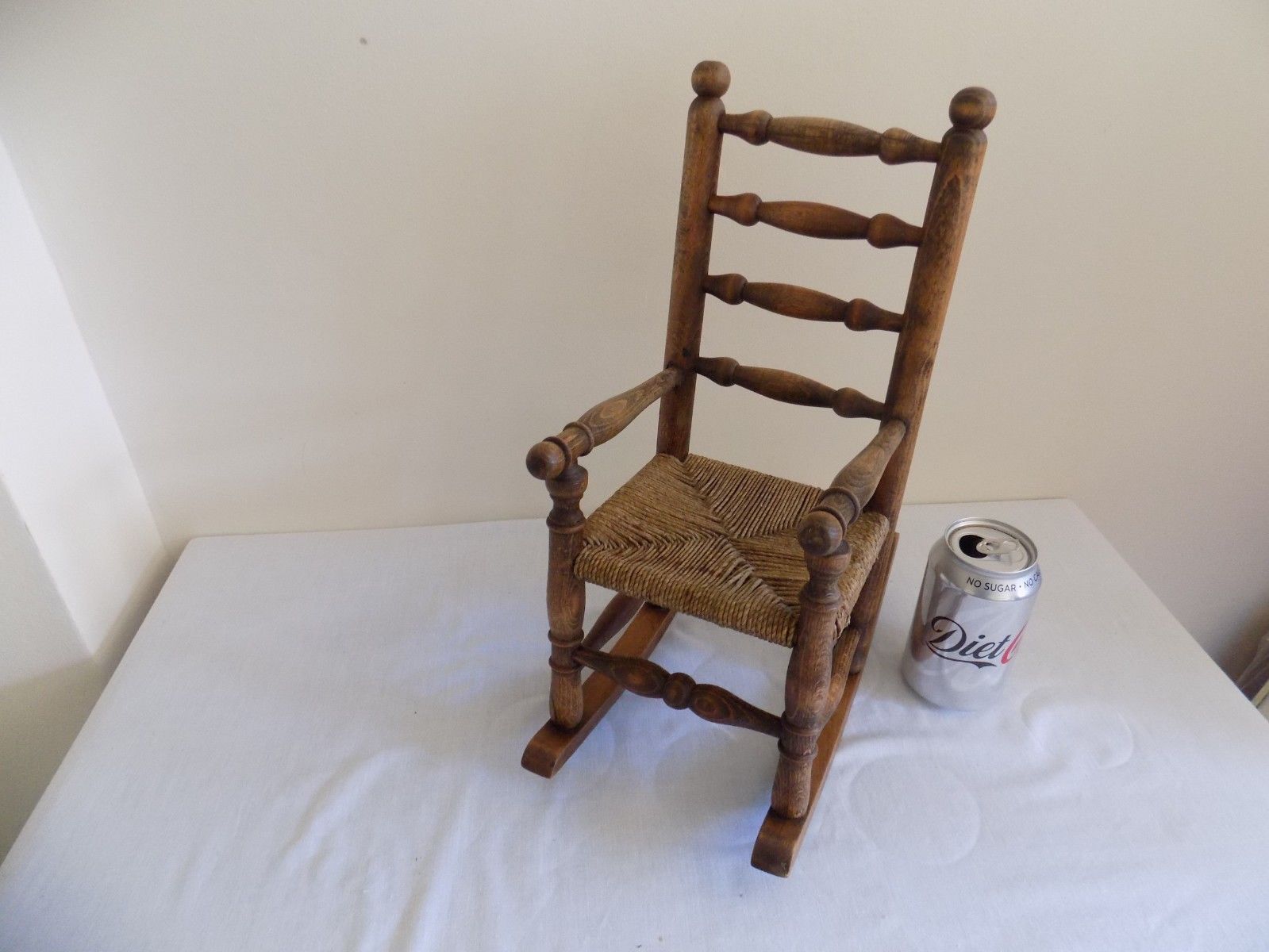 Title (ebay affiliate link): ANTIQUE APPRENTICE PIECE MINIATURE/DOLLS ROCKING CHAIR OAK RUSH SEAT EXC COND