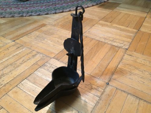 Title (ebay affiliate link): 18th century Double Pan Signed Betty Lamp W Lift Out Top Pan & Twist Iron Handle