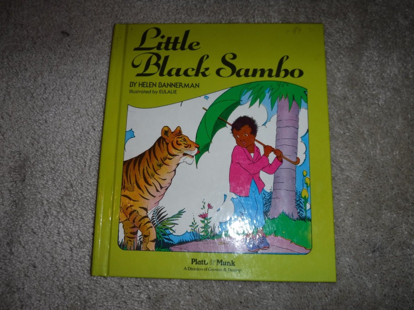 Title (ebay affiliate link): 1983 LITTLE BLACK SAMBO Hardcover Platt & Munk, Helen Bannerman, illus Eulalie