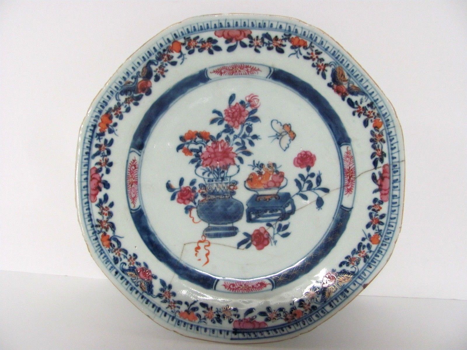 Title (ebay affiliate link): Antique Japanese Chinese Plate Hand Painted Vases Flowers Fish Butterflies as is