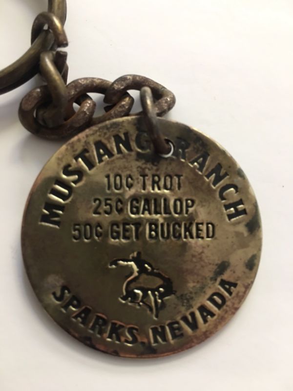 Title (ebay affiliate link): Vintage Mustang Ranch Solid Brass Keychain $3 All Night Check Sparks, Nevada