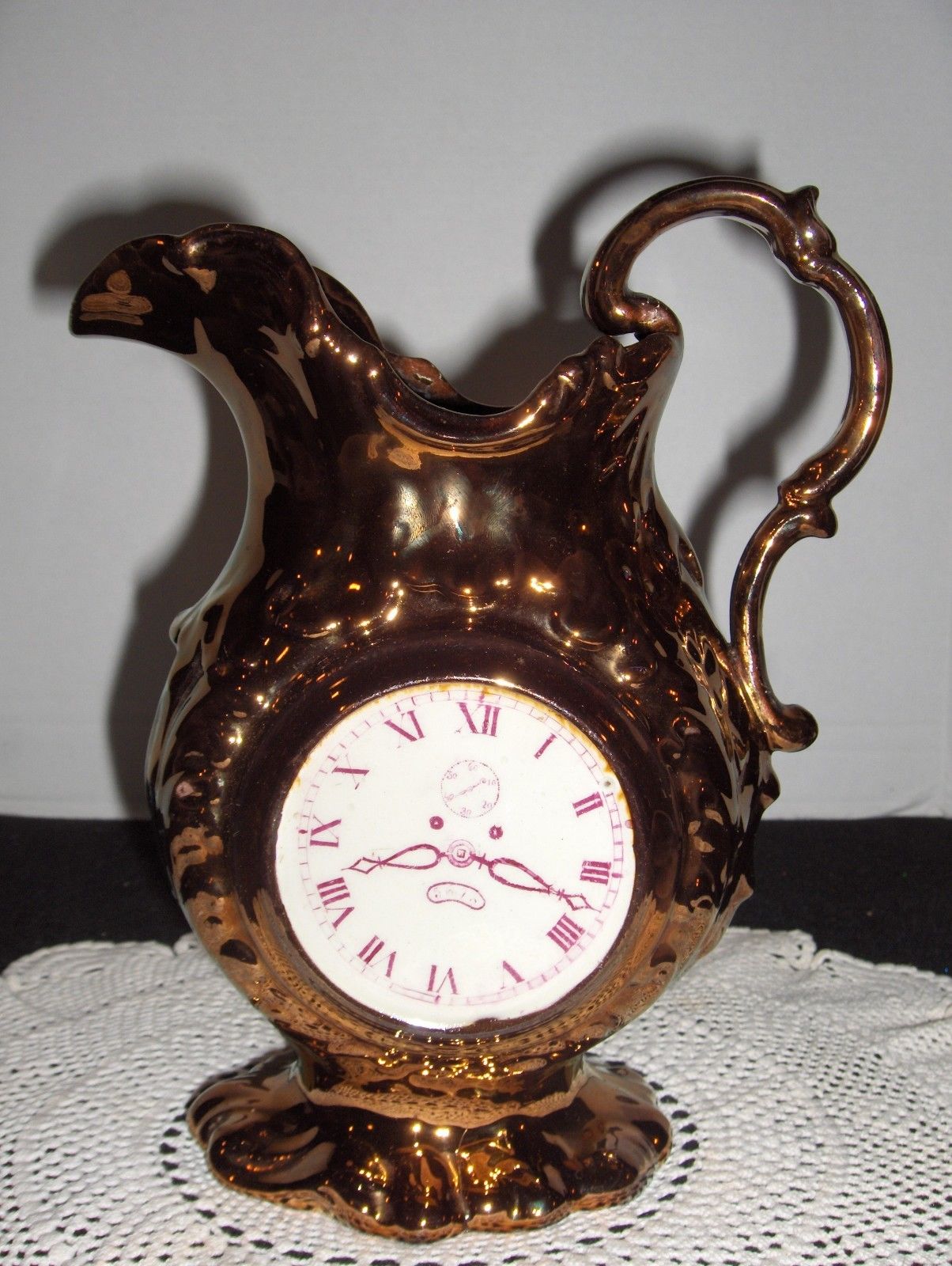 Antique Copper Lustre Jug Clock Face Chinoiserie Scene "Charity"