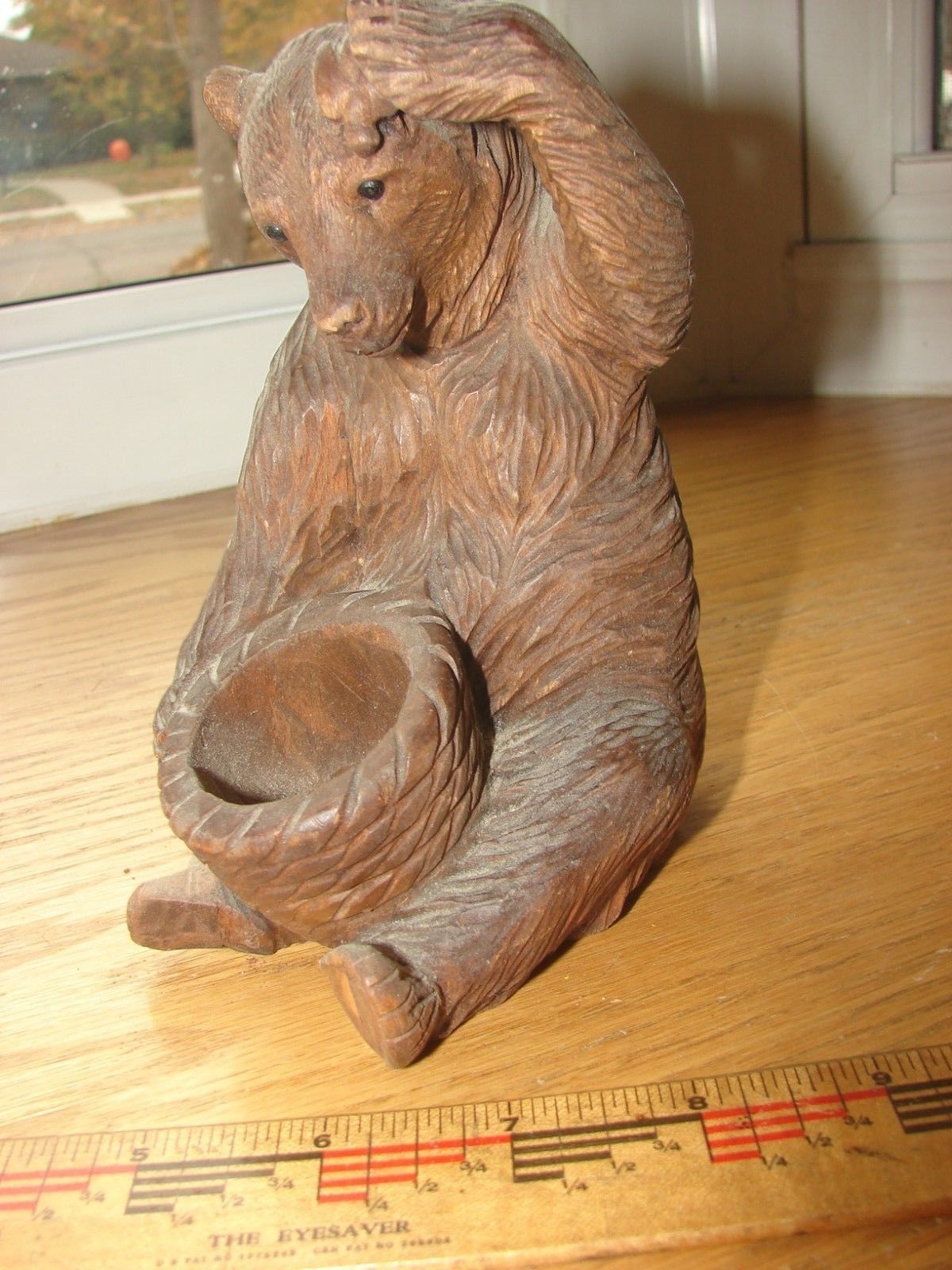 Cute Vintage Carved wooden bear w/ paw in bee hive