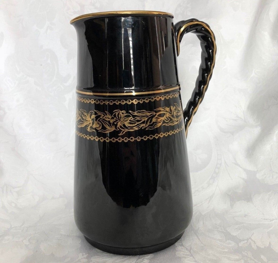 Bates, Elliot & Co. Victorian Black Jackfield Pitcher Jug 1800s Staffordshire