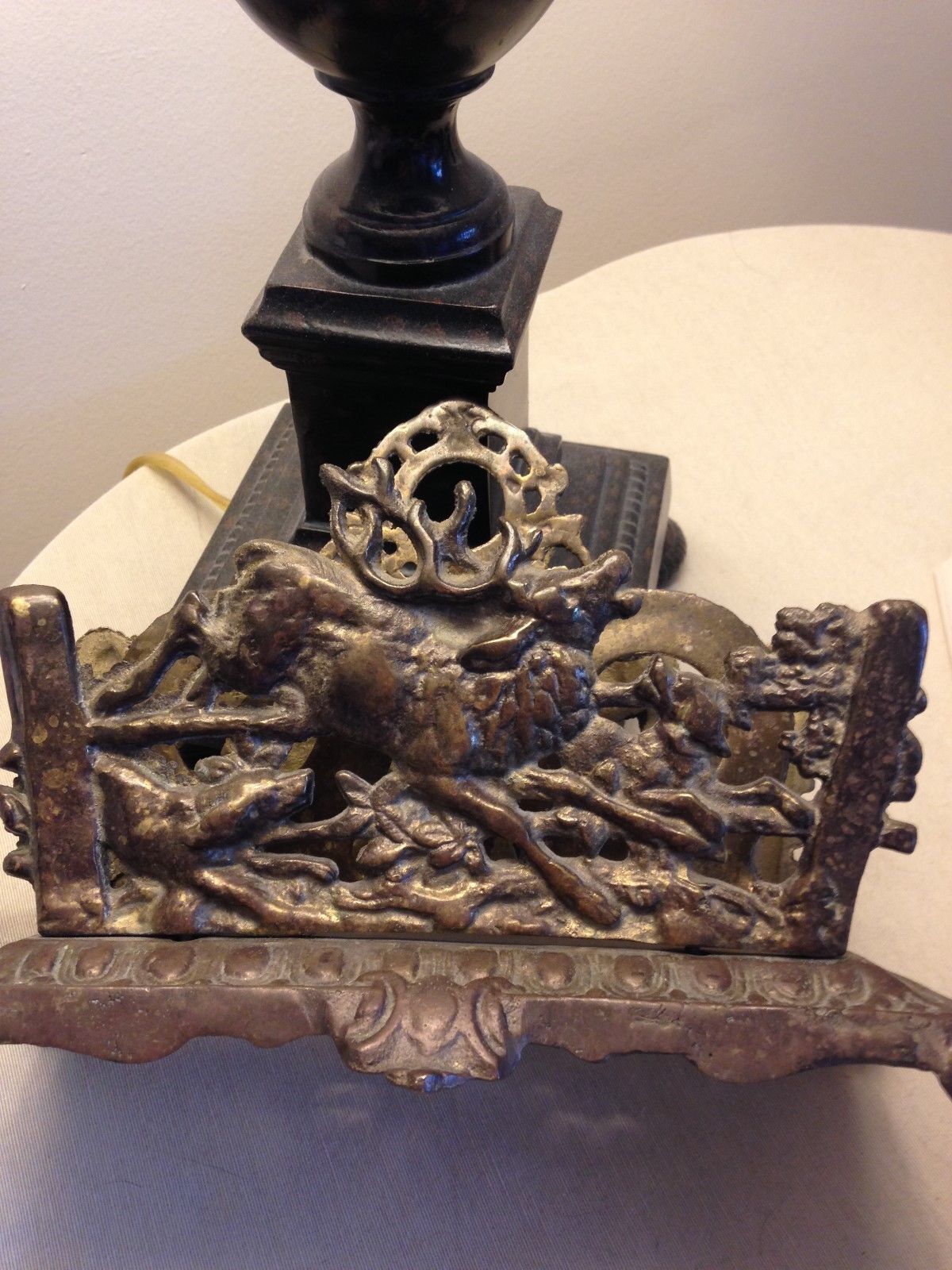 Title (ebay affiliate link): VINTAGE ANTIQUE BRASS BRADLEY&HUBBARD B&H LETTER HOLDER DOG CHASING ELK