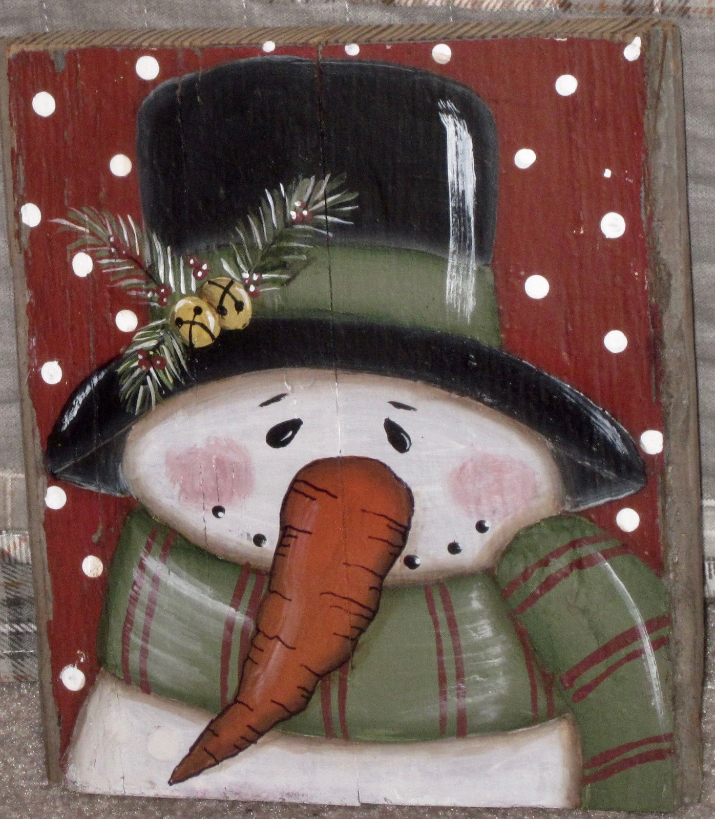Title (ebay affiliate link): *~*PRIMITIVE*~* HP FOLK ART PRIM SNOWMEN *~* WINTER *~* RECLAIMED WOOD