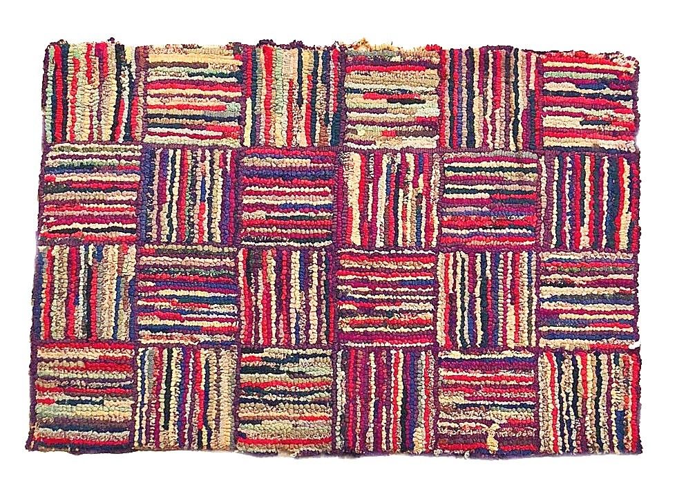 Title (ebay affiliate link): Small Antique Folk Art, Geometric Hooked Rag Rug -- 25" x 17"