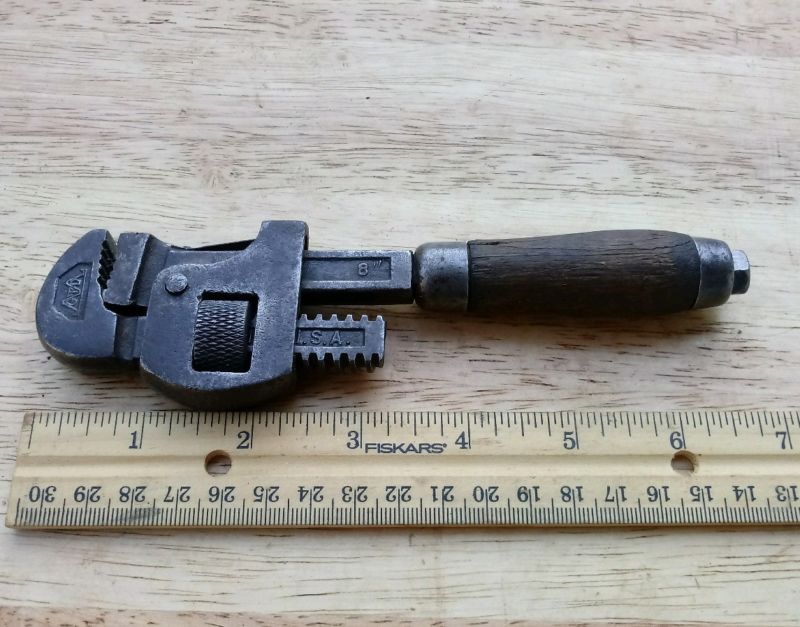 Title (ebay affiliate link): Vintage Wood Handle Pipe Wrench 7" Made in USA Used GTD