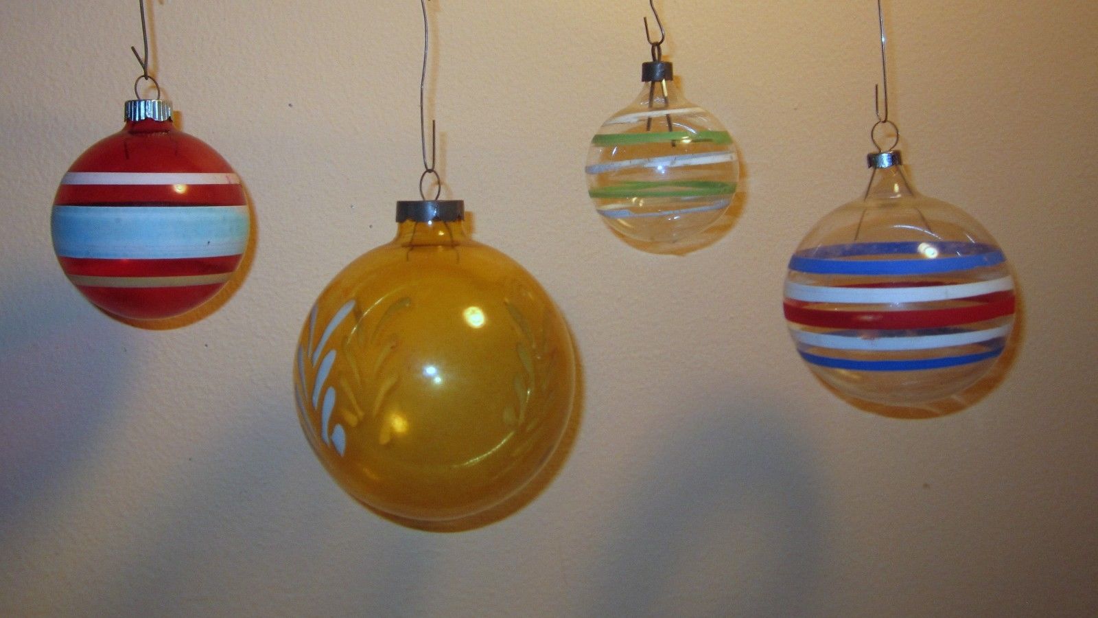 Title (ebay affiliate link): ANTIQUE UNSILVERED GLASS CHRISTMAS ORNAMENTS STRIPES RED WHITE BLUE