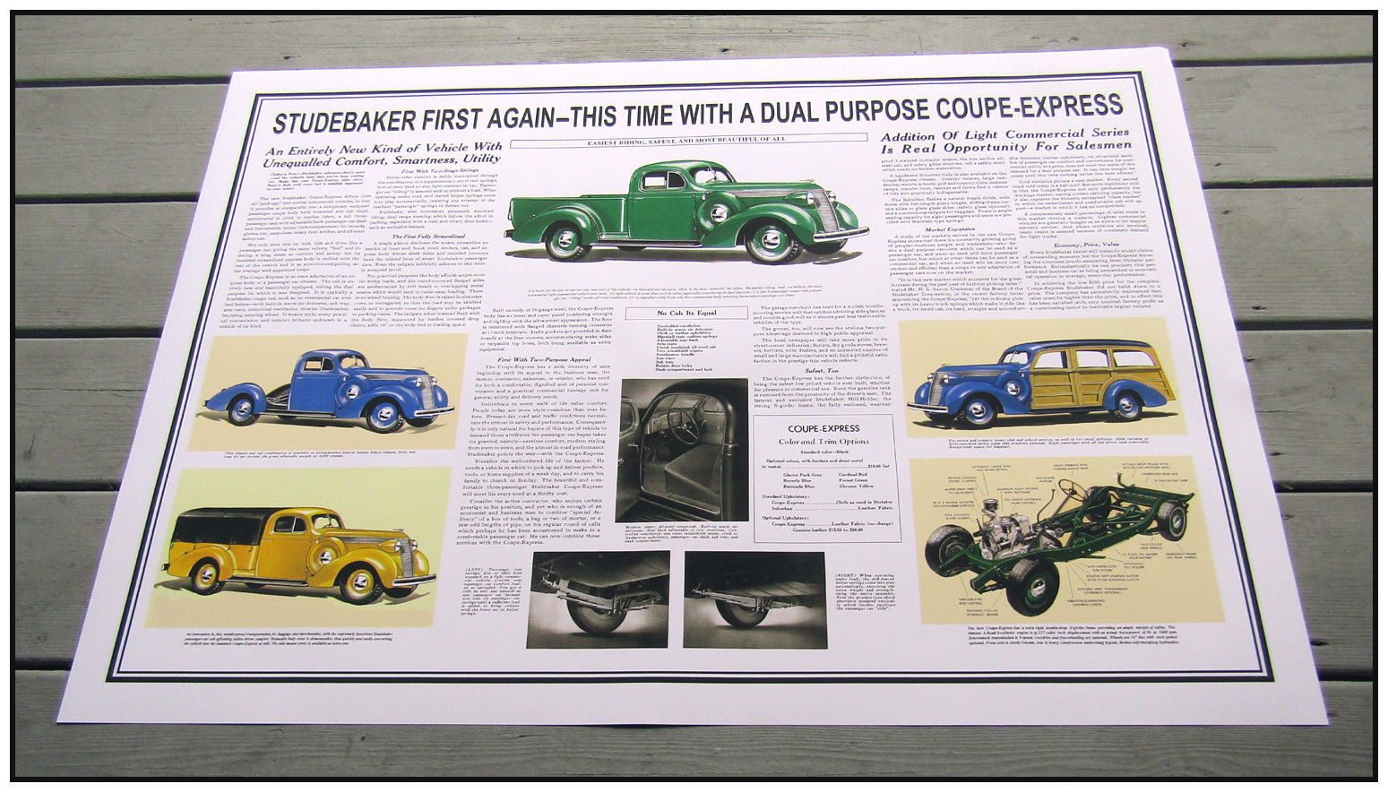 1937 Studebaker Coupe Express truck & woody large 23 1/2 X 34" showroom poster