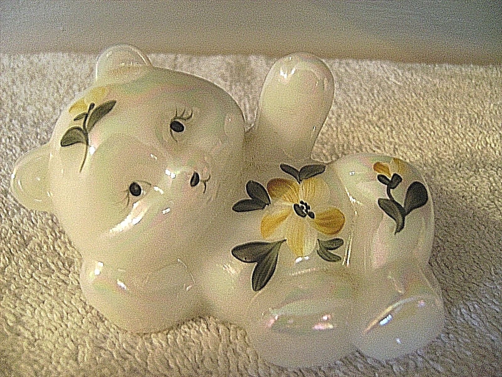 Title (ebay affiliate link): FENTON - S. ALLMAN (HP) MILK GLASS/CARNIVAL RECLINING BEAR - NO RESERVE!!!