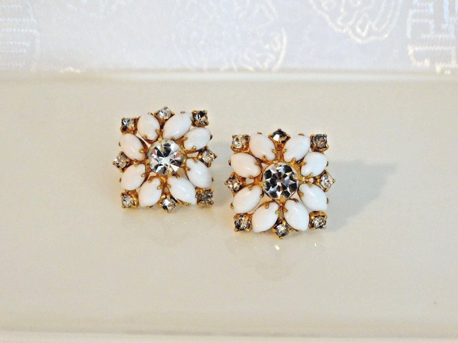 Title (ebay affiliate link): "LOVELY" VINTAGE GOLD TONE/MILK GLASS/RHINESTONE CLIP EARRINGS