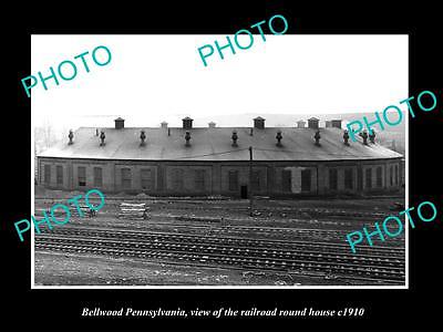 OLD LARGE HISTORIC PHOTO OF BELLWOOD PENNSYLVANIA, THE RAILROAD ROUNDHOUSE c1910