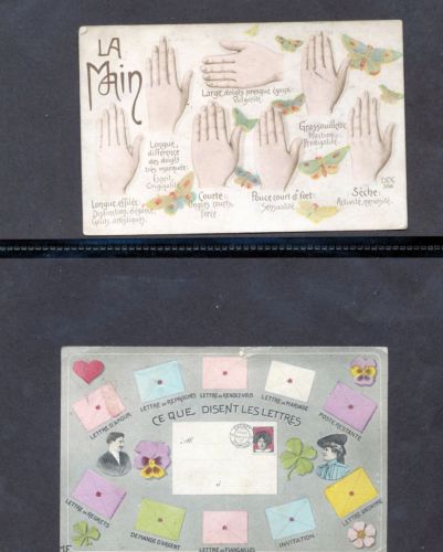 Title (ebay affiliate link): France La Main Ce Que Disent Les Lettres Old Used Postcards x 2 (Ta 345