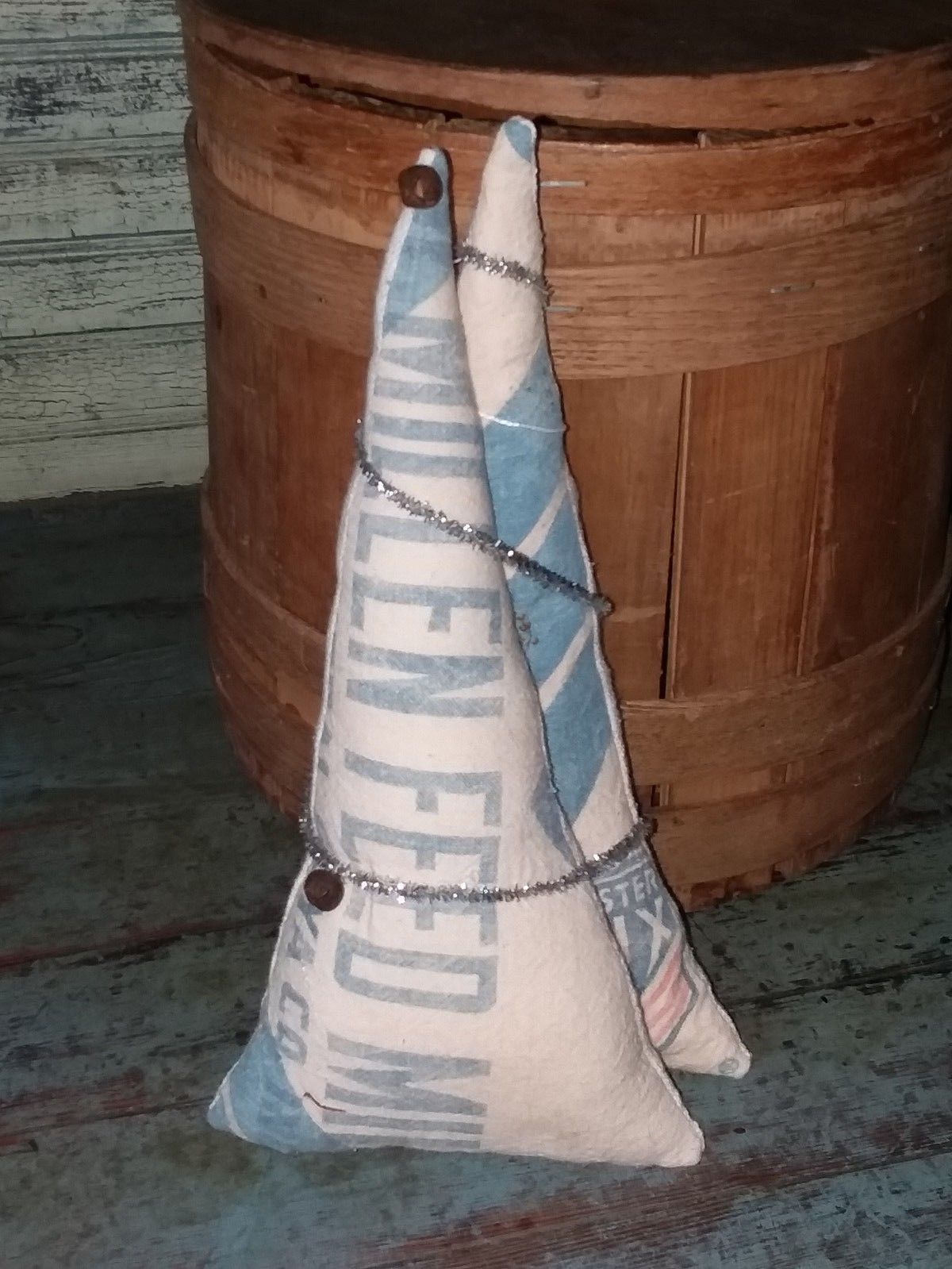 Title (ebay affiliate link): PRIMITIVE handmade Feed sack CHRISTMAS TREE LOT - orig. Designantique LOOK
