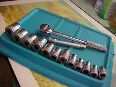 Title (ebay affiliate link): Vintage S-K Tools 14 Piece Socket Set 1/2" Dr Ratchet 5" Ext 7/16"-1" Sockets