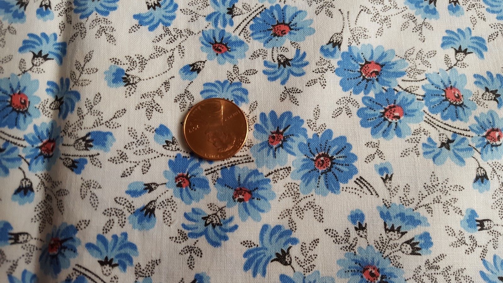 Title (ebay affiliate link): VTG Antique Cotton 30s Fabric Quilt Doll Blue Flowers Black