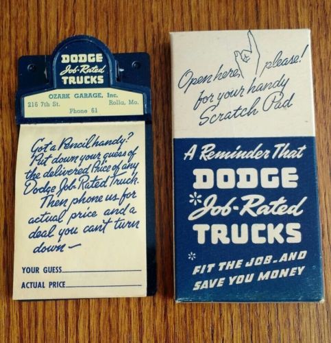 Title (ebay affiliate link): Vintage 1940''s Dodge "Job Rated" Trucks Note Pad Clip Board Original Box