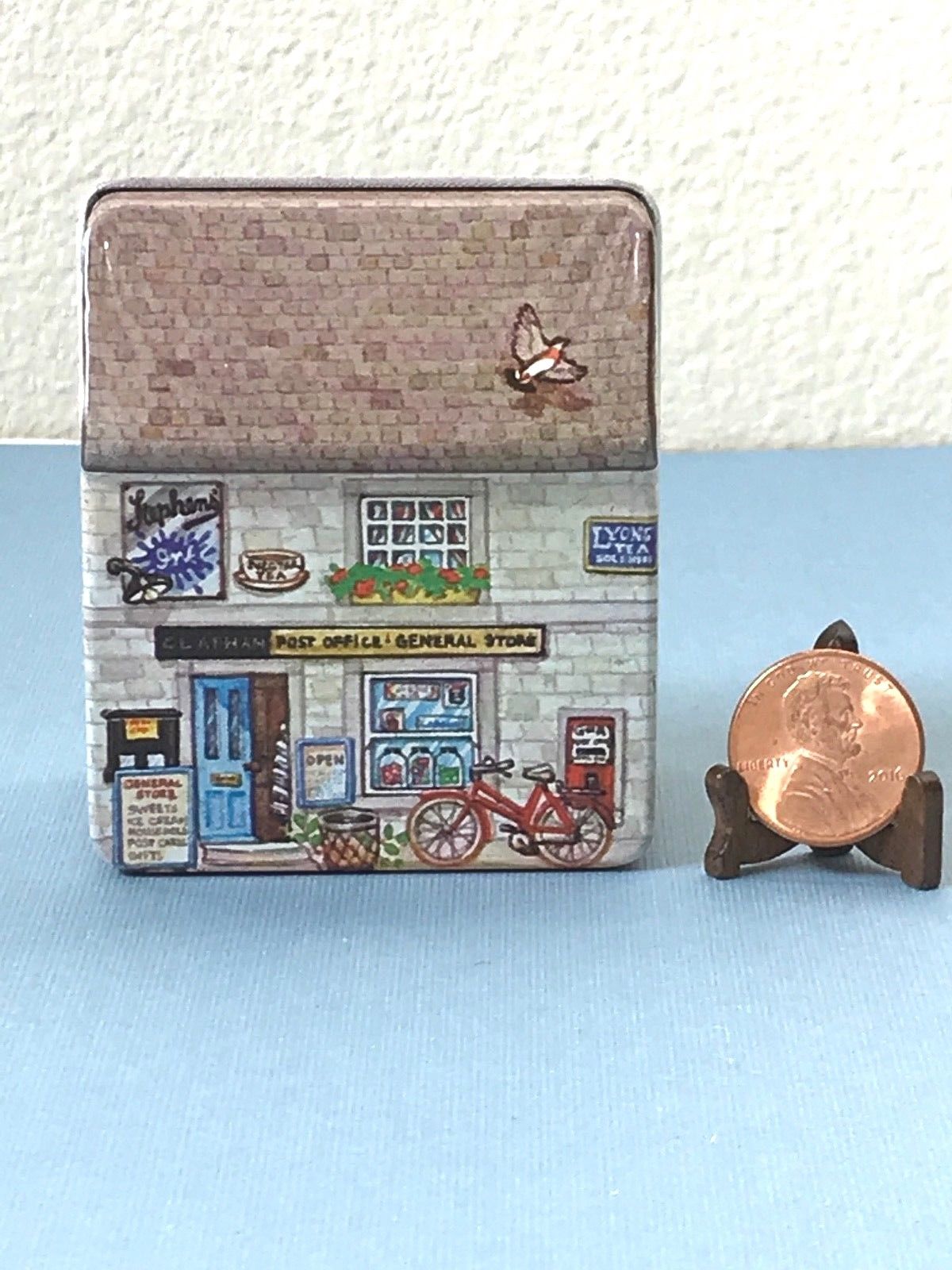 Title (ebay affiliate link): VTG Dana Kubick 1988 Hunkydory Design England Miniature Hinged House Shop Tin