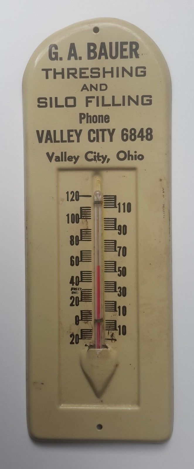 Vintage Metal Thermometer GA Bauer Threshing and Silo filling Valley City OHIO
