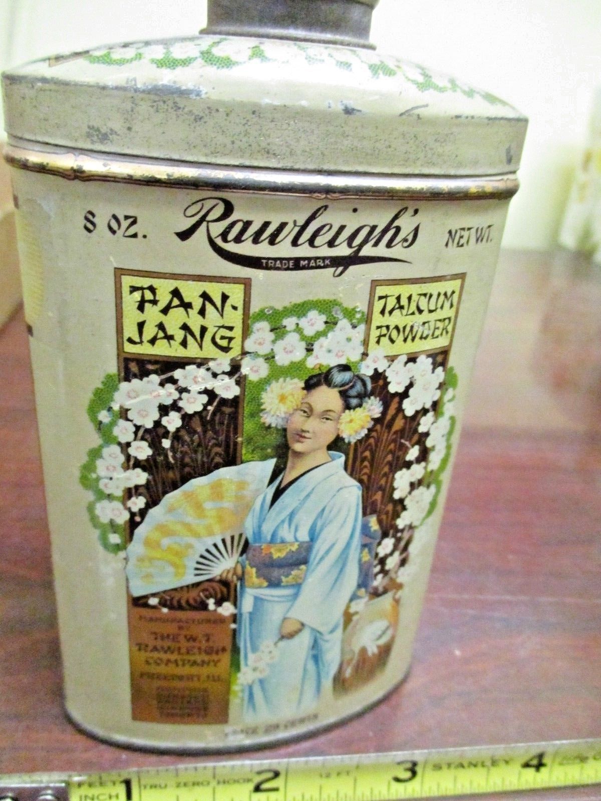 Title (ebay affiliate link): Vintage 1910s Advertising Talcum Powder Tin Rawleigh''s Pan Jang Oriental Geisha