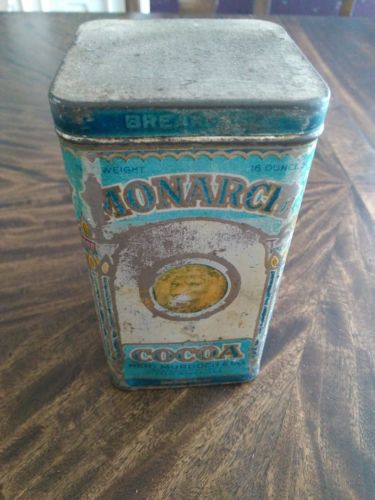Title (ebay affiliate link): Antique Vtg Monarch Cocoa Breakfast 16oz Tin w/ Hinged Lid 6" Lion Reid Murdoch