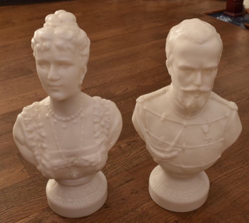 French milk glass Russian Tsar Tsarina John Tavernier advertising biscuit busts
